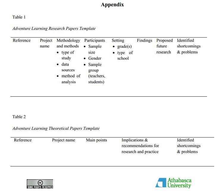 Veletsianos, G. & Kleanthous, I. (2009). A review of adventure learning. International Review of Research in Open and Distance Learning, 10(6), 84-105. [Full-text - Open Access]